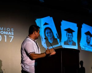 Bueno, cada año la institución realizaba una serie de eventos durante tres días para culminar con la ceremonia de graduación, mi trabajo cada año era crear una línea gráfica, más que todo para invitaciones por correo electrónico y algunos materiales impresos, además de encargarme de la transmisión en streaming, para el año 2017 tenía una idea, me surgió a raíz de un evento donde se me asigno la escenografía. Para ese evento tome fotografías de estudiantes en blanco y negro y las utilicé en varias pantallas.